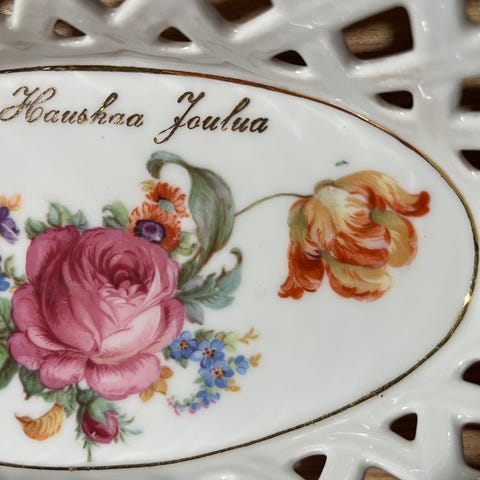 Jouluinen tarjoiluastia, esim karkeille. Astian leveys 17cm.