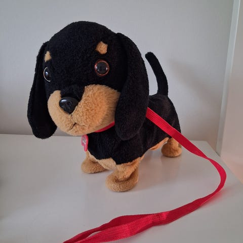 Myydään kuvan käytetty ehjä paristoilla toimiva koira. Kävelee.