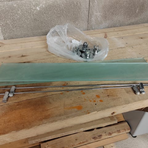 Kuvanmukainen lasi käyttämätön. Saunan ja pesuhuoneen väliseinään, miksei muuallekkin. Koko n. 111cm x 84cm paksuus 8mm