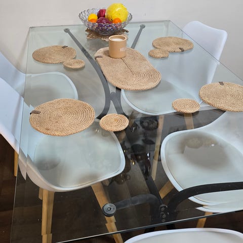 Vähällä käytöllä ollut todella siisti ruokailuryhmä. Kuvissa tuotteiden mitat. Lasipöytä ja tuolit voidaan myydä myös erikseen. Tuolit 140€, lasipöytä 100€ erikseen ostettuna. Luen myös mielelläni sinun näkemyksesi ”oikeasta” hinnasta, joten tarjota saa! Tarvittaessa kalusto kulkeutuu pienellä kuljetus hinnalla myös Tampere-Turku seudulle.