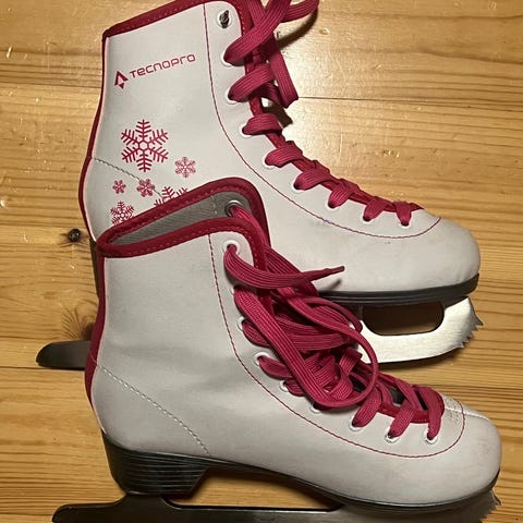 Technopron valkoiset kaunoluistimet kokoa 34. Luistimissa on irrotettava sisäpohja (pituus 22 cm). Siistikuntoiset luistimet. Teräsuojat saa mukaan.