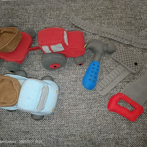 Vauvan lelu. Silmät liikkuu veturia pukatessa. Kuutioita siirrellään putkea pitkin. Patteriluukun kansi hukassa.