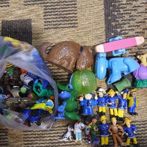 Myydään muovisia sukeltajahahmoja eri väreissä sekä vene.
