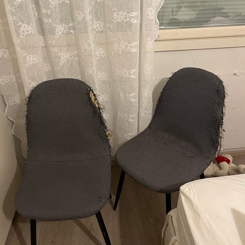 3 kpl vanhoja (26 v) tuoleja. Heiluvat vähän istuessa jos nitkuttaa, joten voisi yrittää liimata. Lakkaus edelleen kunnossa. Annetaan yksittäinkin. Puhdistus hakijalle.