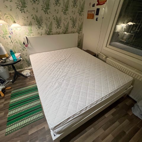 Jyskin Top mattress gold T70 sijauspatja. Säilytyksessä tullut pieni tahra, ei yritetty poistaa. Tällä nukuttu muutama yö. En tykännytkään patjasta kun on tällainen memoryfoam ja "menee montulle", joten palattiin vanhaan sijauspatjaan takaisin. Kuljetus mahdollista 50e lisähintaan lähialueelle.