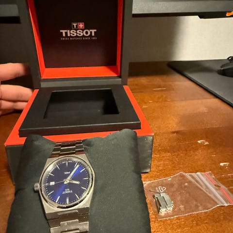 Siitä lähtis erinomaisessa kunnossa oleva tissot prx 35mm, rannekkeesa ihan pientä naarmua mutta se on normaalia, lasissa ei ole naarmua