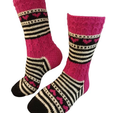 Käsinneulotut naisten moniväriset villasukat 7 veljestä ja step 6 langasta 75% villaa ja 25% polyamidia.