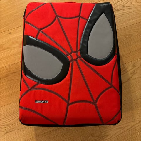 Siisti Samsoniten Spiderman lentolaukku. Koko 50 x 35 x 20 cm.