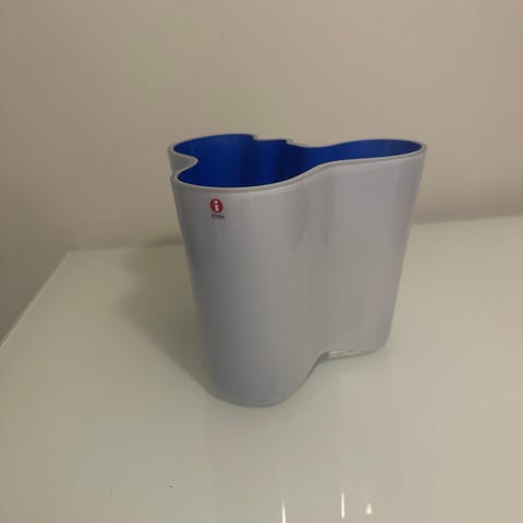 Signeerattu ultramariinin sininen Suomi 100 Aalto maljakko.