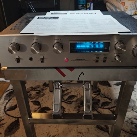 Pioneer stereosarja. Pioneer Blueline-sarjan pikkuvahvistin sekä viritin. Soi todella nätisti, potikat putsailtu IPA:lla ja pölyt puhalleltu sisältä pois. Viritin pistäytyi juuri lampunvaihdossa. Oikein mainio pikkusetti. Mukaan saa laitekaapin sekä ripustusvikaiset cs-444 kaiuttimet. Alla lisätietoa: