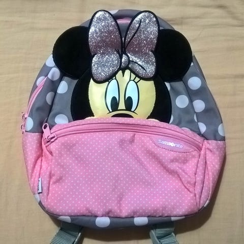 Pikkureppu syvyys 14 cm, leveys 25 cm, korkeus 30 cm.