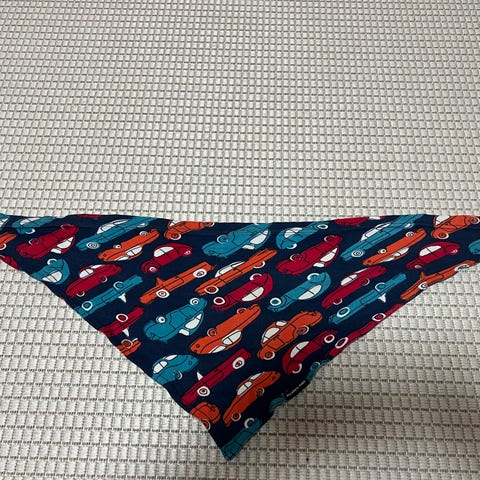Polarn O. Pyret lasten huivi. Harmaa pohja ja värikkäitä autoja.
