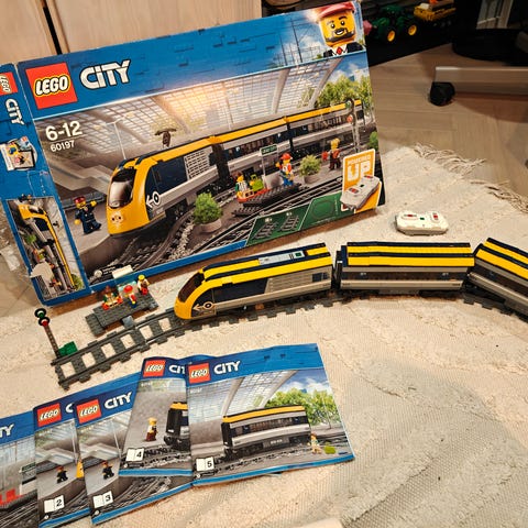 LEGO City 60197 junasarja + lisäraiteita. Tarpeeksi raidepaloja huoneen kokoisen rautatien rakentamiseen.
