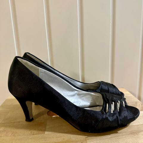 Mustan väriset korkokengät koko 40 vähäiselle käytölle jäänyt.koron pituus 6cm Nouto sopimuksen mukaan Jupperista ostajalle postikulut lisätään hintaan.