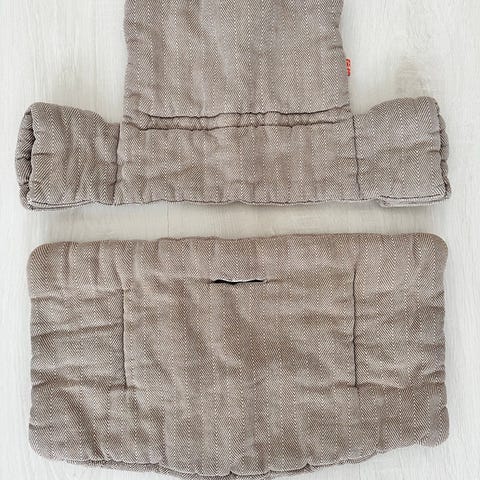 Hyväkuntoiset ja ehjät pehmusteet Stokken Tripp Trappiin. Kankaan pinta vahamainen ja helppo puhdistaa.