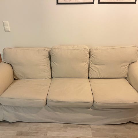 Hyvä sohva, ei läikkiä ja ei eläimiä.