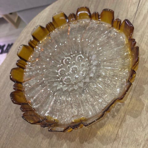 Suomalaista designia oleva moitteettomassa kunnossa oleva tarjoiluastia värinä lasi / kirkas / vihreä