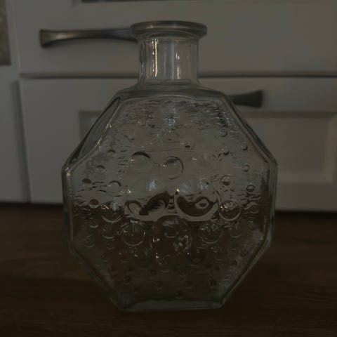 Riihimäen lasin hieno punainen noppapullo / Arpa on heitetty