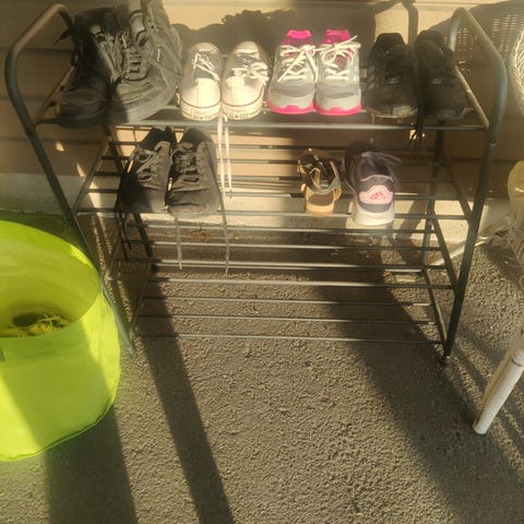 Tarpeettomaksi jäänyt Hals 4 tasoinen musta kenkähylly. Todella tilava ja moitteettomassa kunnossa. Sävy on mielestäni satiini musta. Nouto.