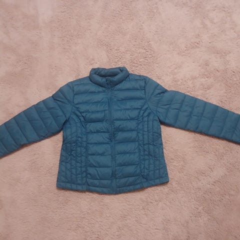 Myydään ok-kuntoinen kevyttoppatakki. Viimeisessä kuvassa näkyy pientä langanpakoa, ei haittaa käyttöä.