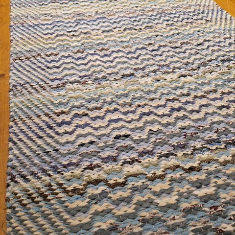 Uusi puuvillaisesta (lakana) kuteesta kudottu matto. Loimi luonnonvalkoinen 12-säikeinen kalalanka. Mukaeltu perinnemalli. Maton koko 76 cm x 2 m + hapsut. Nouto Hämeenlinnasta, kulkeutuu lähes viikoittain Riihimäelle tai toridiili.