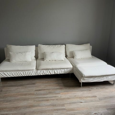 Myydään useamman vuoden vanha Ikean Söderhamn sohva tumman harmaana. Sohva on kahden istuttava, jossa on kulma pala sekä divaani. Kankaat ja sohva yleisesti ovat hyvässä kunnossa. Päällisiä pesty säännöllisesti. Taloudessa ei ole tupakoitu eikä ole ollut koskaan lemmikkejä.