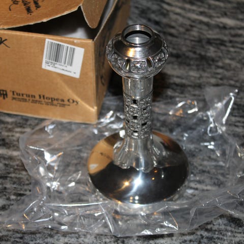 Myydään 2 kpl:tta Pentti Sarpanevan Pitsi-kynttilänjalkoja. Valmistusajankohta 1960-luku, materiaali pronssi, pohja muovinen. Kynttilänjalkojen myyntihinta yhteensä 40 euroa.
