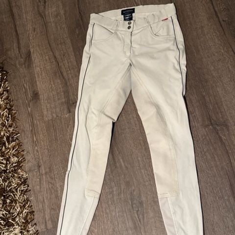 B Vertigo valkoiset naisten kisahousut (ratsastus). Housuissa tummentumaa/kulumaa (ks. kuvat). Muuten ehjät. Koko 40.