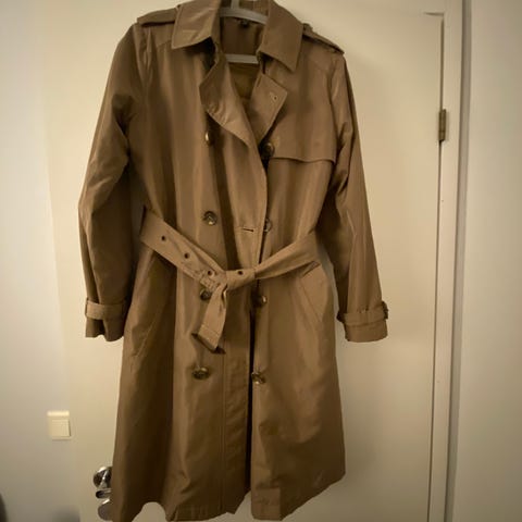 Ralph Laurenin trenssitakki, lyhempää versiota. Pituus suurin piirtein 90 cm, koko tarkemmin ottaen 'M'.