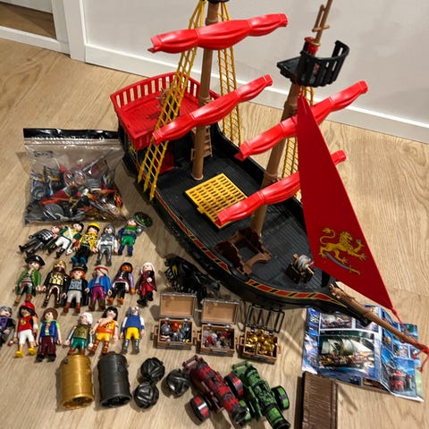 Playmobil merirosvolaiva lasten lelu, jossa on punaiset purjeet ja yksityiskohtaiset kannen varusteet. Sisältää merirosvohahmon ja ankkurin. Soveltuu lasten leikkimiseen ja mielikuvitusleikkeihin.