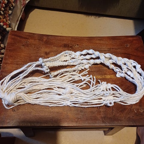 Lahjaksi saadut, käsin valmistetut amppelit. Valitettavasti meidän kotiin liian pitkät, siksi myyn.