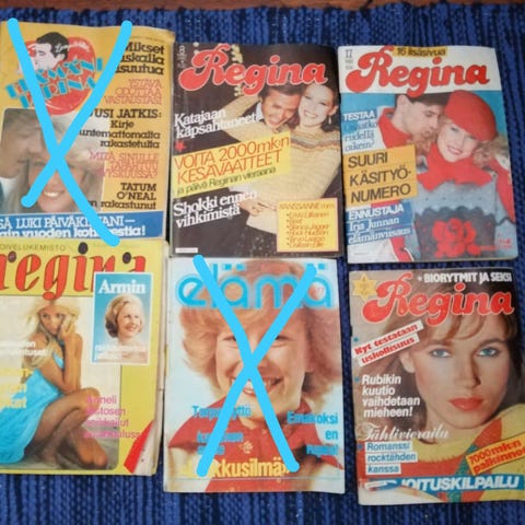 Neljä kappaletta vanhoja kunnon Regina-lehtiä. Kaikki vuodelta 1980. Tässä nostalgiaa kerrakseen :) Mieluiten nouto 40100. Mahtunee Ärräpussiin (v. loppuun enää saatavilla) + 6e.