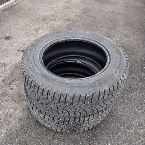 Neljät, käytetyt continental nastarenkaat. Nastoja ei paljoa jäljellä, kulutuspintaa löytyy. Koko: 195/65 R15Q