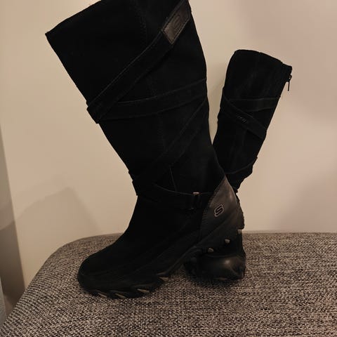 Hyväkuntoiset mustat saapikkaat keinonahkaa koko 38, vettähylkivä pinnoite. Postitus sisältyy hintaan
