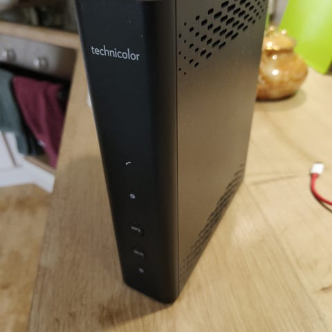 Technicolor Modeemi verkkolaitteena. Laite sisältää useita Ethernet-portteja ja liitäntöjä internet-yhteyden muodostamiseen. Käyttötarkoituksena kotiverkon tai pienen toimiston internet-yhteyden jakaminen.