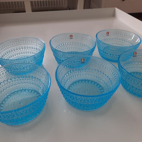 Iittala Kastehelmi lasiset lautaset ja kulhot. Sarja sisältää useita pieniä lautasia ja kulhoja, jotka on valmistettu kirkkaasta lasista. Lautaset ja kulhot sopivat esimerkiksi jälkiruokien tai pikkupurtavien tarjoiluun.