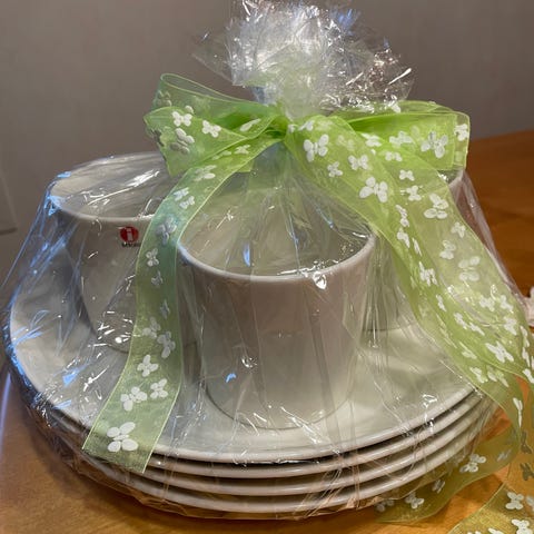 Aterioista jälkiä kuten kuvassa näkyy, kaikki lautaset ehjiä. Kaikki kerralla 40e.