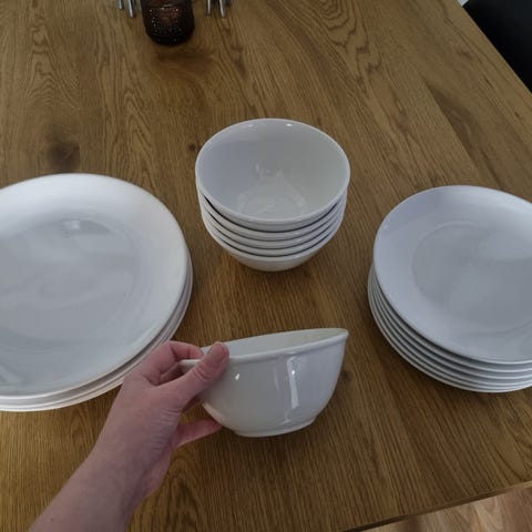 5kpl. mukeja, pinottava muotoilu. 5€