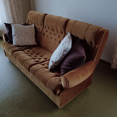 Sohvakalusto, pölyiset, ehjät, jaloissa pientä kulumaa