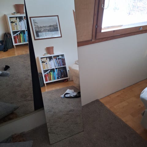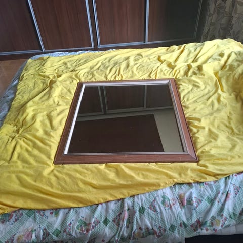 Ostan kaaren muotoisen ison peilin, mielellään kullanvärisellä reunuksella tai reunalla, jonka pystyy maalaamaan.