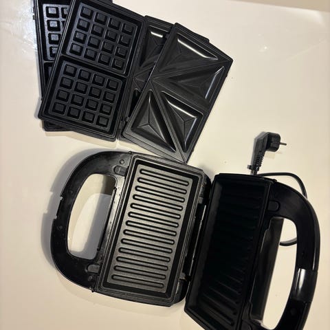 • Yksi isompi paistotaso sekä kahdeksan pientä, kahvallista pannua tarttumattomalla pinnoitteella.