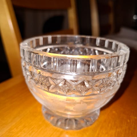 Muottiin kiinnipuhallettua kirkasta lyijykristallia.