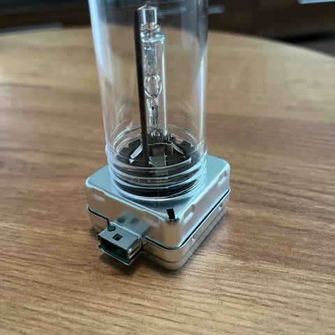Kuvassa oleva xenon ajovalon piirilevy. Toimivasta valosta josta lasi haljennut.