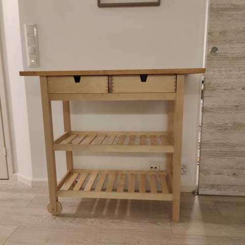 Myydään uusi, kokoamaton IKEA Förhöja -tarjoiluvaunu/apupöytä. Massiivipuuta (koivu).