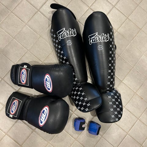 Thai straps and gloves more flexible about the sport. The savate shoes might have too hard a sole for e.g. boxing. So the whole set at its best for savate and we'll prioritize the sell of the whole set. But open to offers for just individual items.
