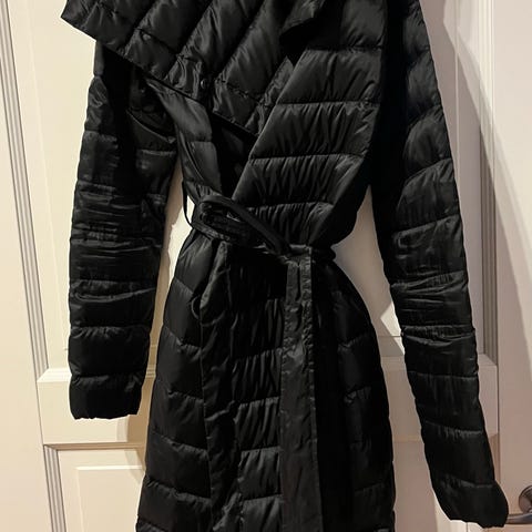 Itselläni takki yltää hieman yli polven (olen 162cm). Vetoketju aukeaa sekä ylhäältä että alhaalta, helpottaa esim. autossa istumassa. Vetoketjussa yksityiskohtana siivekäs hyönteinen. Ihanan ohut, mutta lämmin takki.
