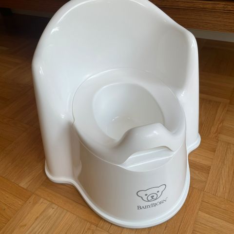 Kaksi harmaata Baby Björn -pottaa. Molempia käytetty jo enemmän. Naarmuja näkyy istuinosassa ja myös rungossa. Käyttökelpoisia kuitenkin vielä.
