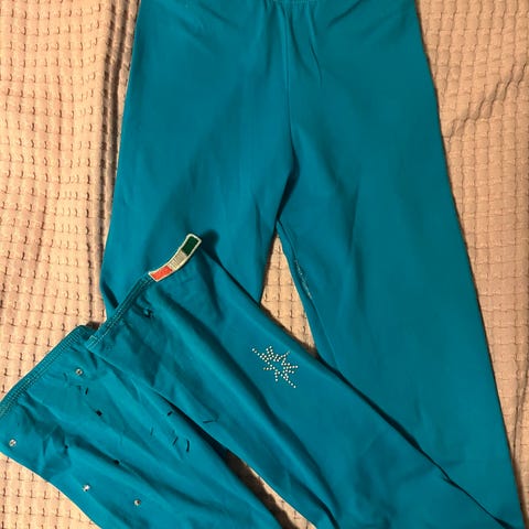 Limen väriset housut taitoluisteluun. Merkki Karisma. Koko lasten S. Lahkeissa teräniskemiä, muuten ehjät.