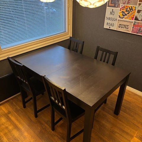 Myydään tarpeettomana uuden pöydän myötä. Jalat irroitettu helpompaa kuljetusta varten.
