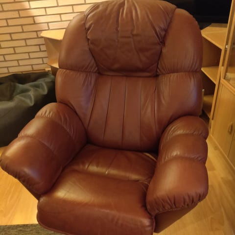 Siistikuntoinen nojatuoli ruskea